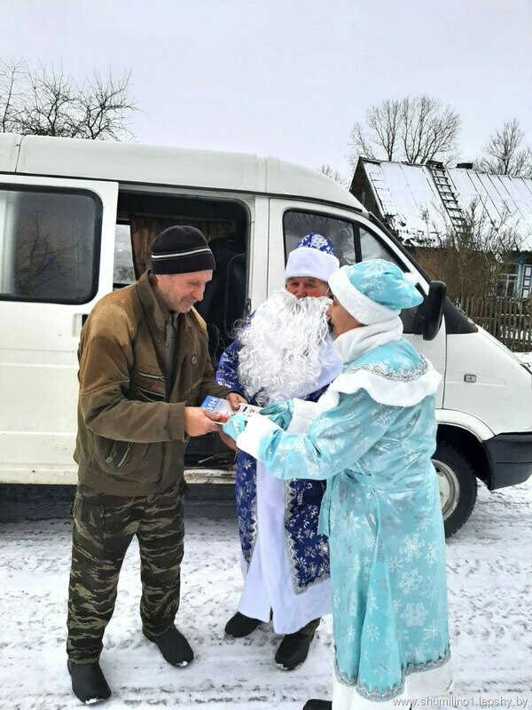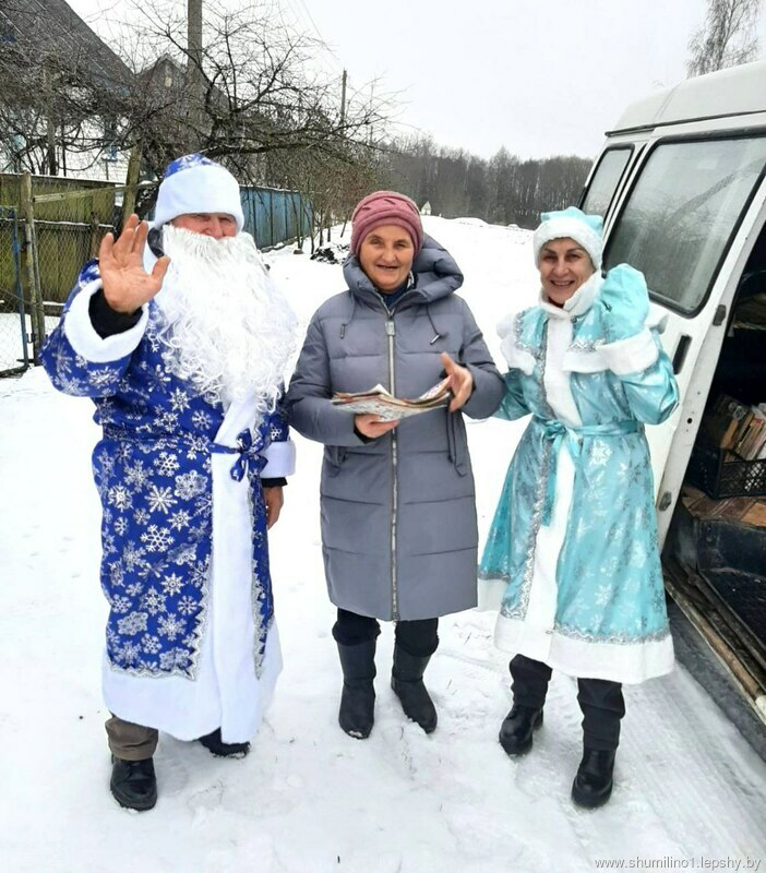 Предновогодний экспресс маршрут библиобуса в д. Победу открыл тур Деда Мороза и Снегурочки по отдаленным деревням нашего района. Вместе с книгой наши читатели получают подарки и хорошее настроение