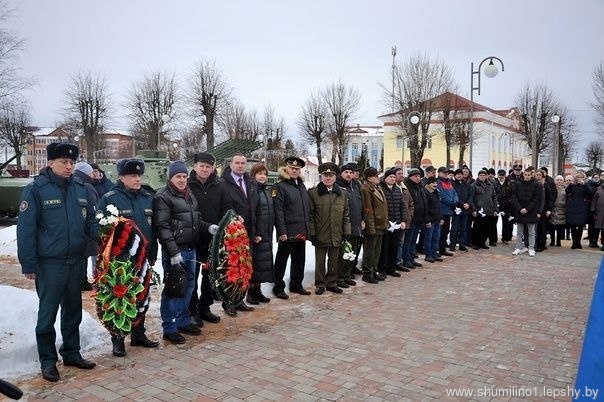 Председатель районного Совета депутатов Николай Будневич, выступая на митинге, отметил, что все мы, должны ценить главную ценность, которая есть у нас – мир. И делать все, чтобы его сохранить.Про Афганистан, интернациональный долг, боевых товарищах рассказал воин-интернационалист Юрий Лопатин.Как символ негасимой памяти про солдатский подвиг в далекой стране, старшеклассники СШ №1 поставили ломпадки к памятному знаку с именами Анатолия Скобова, Виктора Угневенка, Петра Чуркина, Ивана Соколова – шумилинцев, погибших в Афганестане.