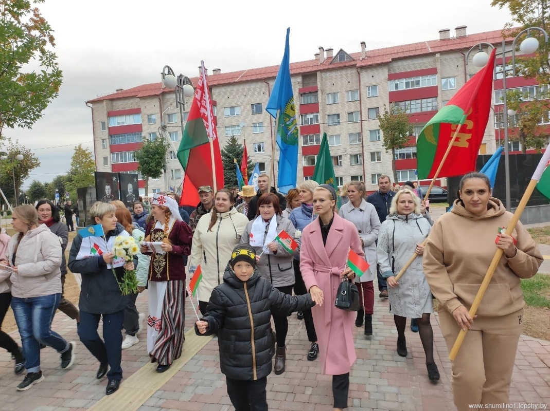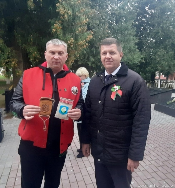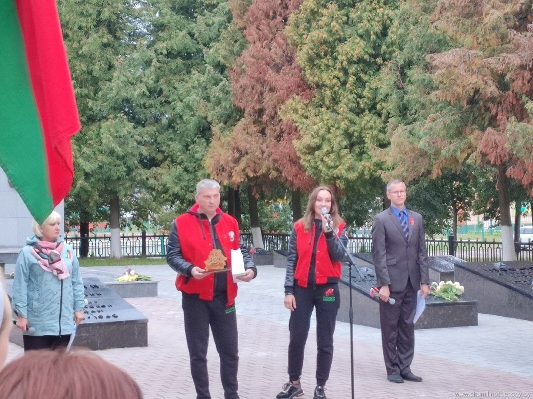 14 сентября на пути следования посетили районный центр Беларуси. Председатель Шумилинского РИК С.А. Галынчик вручил символическую деталь, чтобы затем собрать из них часы. Также участники акции установили на воинских захоронениях – таблички с QR-кодами, где будут указаны общие данные о каждом мемориале и воспоминания участников войны.