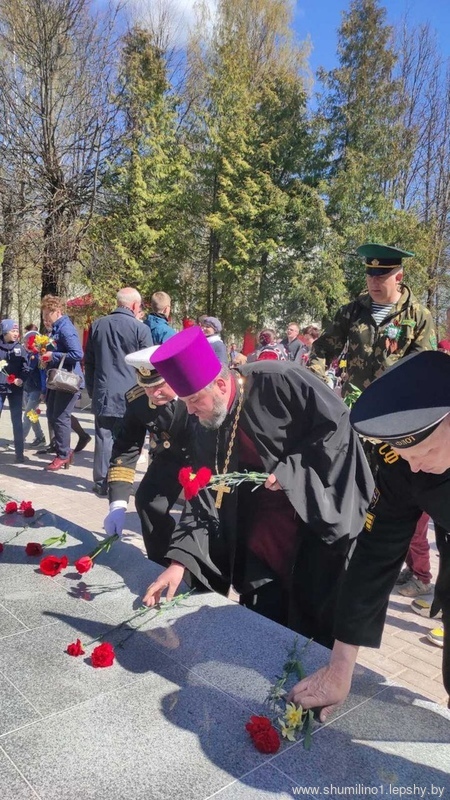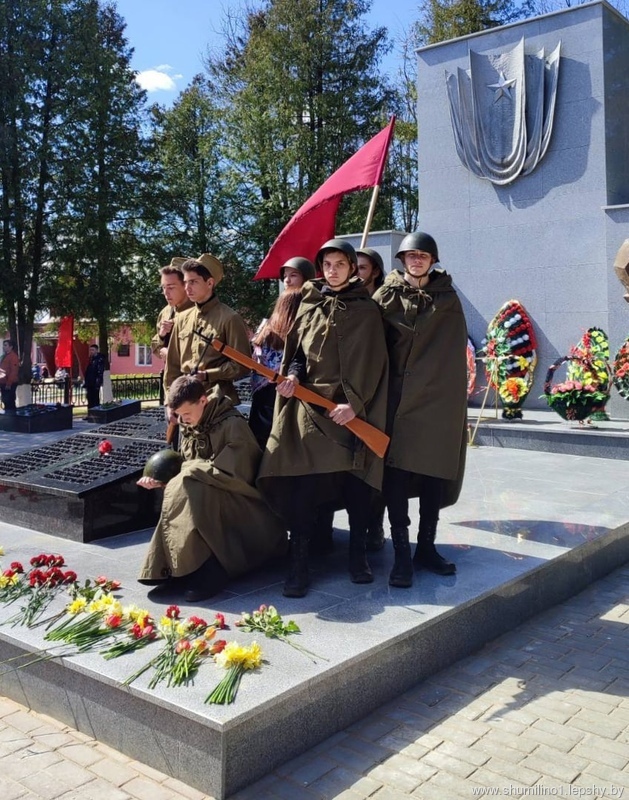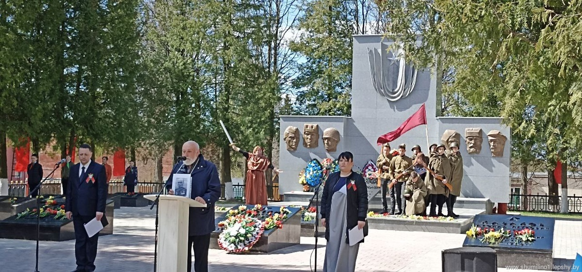 Митинг “Салют Победы не померкнет”, посвященный 77-годовщине Победы советского народа в Великой Отечественной войне состоялся на брастком захоронении в г.п. Шумилино. По традиции 9 мая сюда приходят шумилинцы, гости города, школьники, представители трудовых коллективов и общественных организаций. Слова благодарности воинам – победителям от имени нынешнего поколения выразил председатель Шумилинского райисполкома Сергей Александрович Галынчик. После возложения мемориал утонул в цветах. Около вечного огня и пожилые и молодые склонили головы в знак памяти и безграничной благодарности.