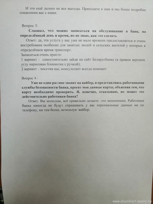 07.06 в читальном зале районной библиотеки прошла встреча с директором ОАО «АСБ Беларусбанк» Масько Ольгой Юрьевной. Были освещены вопросы финансовой грамотность, платежных карт и предотвращения киберприступности. Встреча была проведена в форме диалога. Особое внимание было уделено различным видам мошенничества через социальные сети и месенджеры. Представитель банка проконсультировала, как не дать себя обмануть. Рассказала, что мошенники могут звонить по мессенджерам и представляться сотрудниками банка, присылать различные сообщения с ссылками, переходя по которым люди попадают на уловку мошенника, также присутствующие получили ответы на интересующие их вопросы.