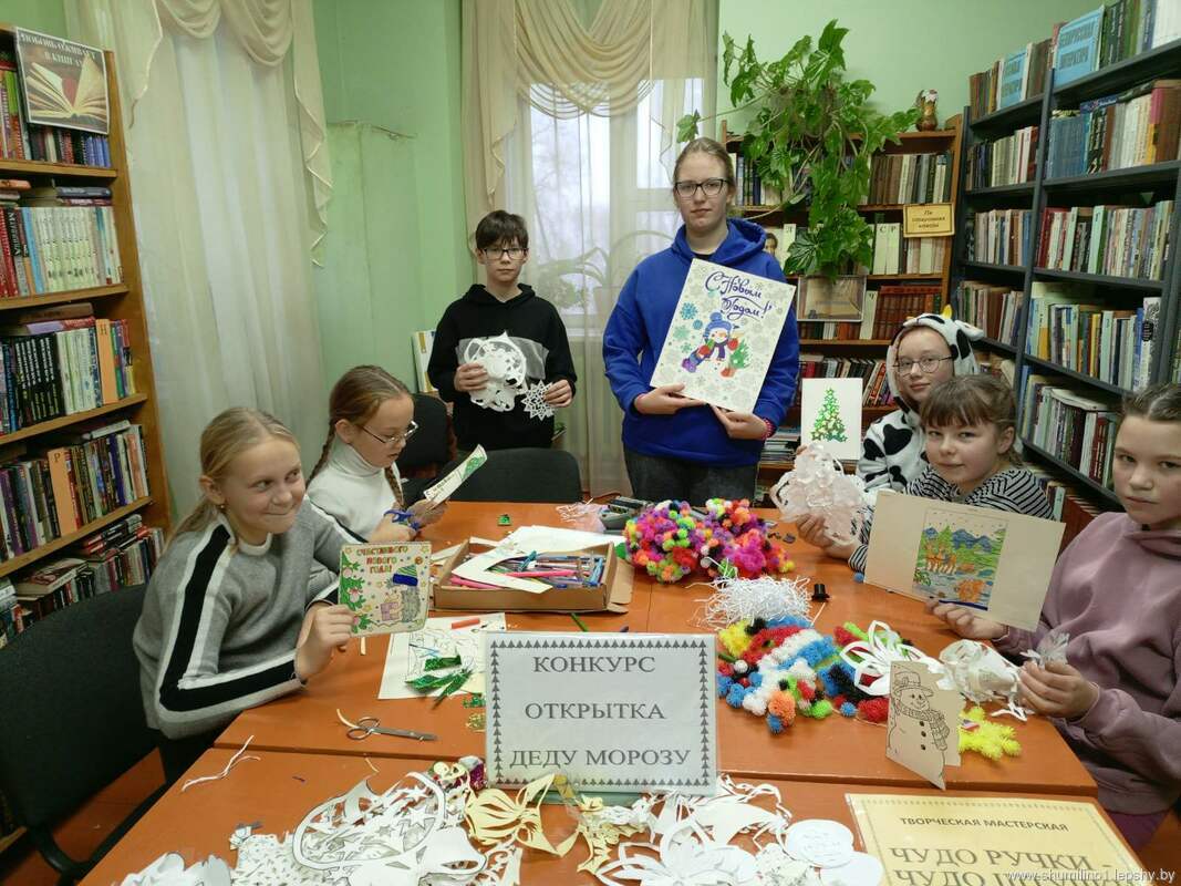 Читальный зал Башневской сельской библиотеки превратился в мастерскую, дети с удовольствием спешат сделать отрытку Деду Морозу.