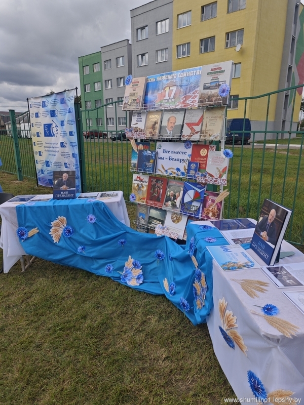 в День народного единства, библиотека приняла активное участие в праздновании с интерактивной выставкой «Все вместе мы — Беларусь». Выставка была направлена на укрепление чувства единства и гордости за нашу страну, знакомство с её историей, культурой и многообразием народов, проживающих в Беларуси.